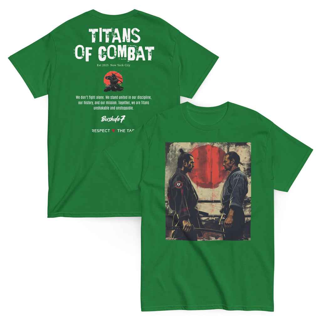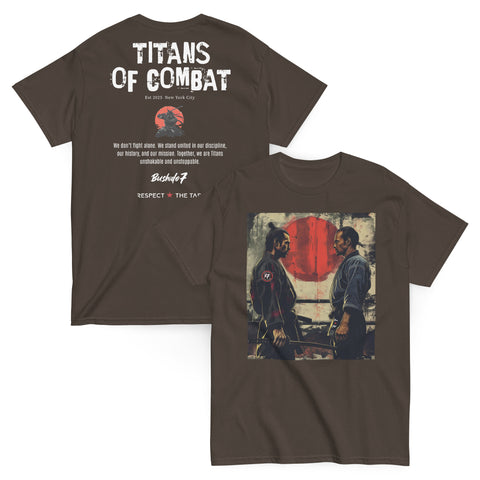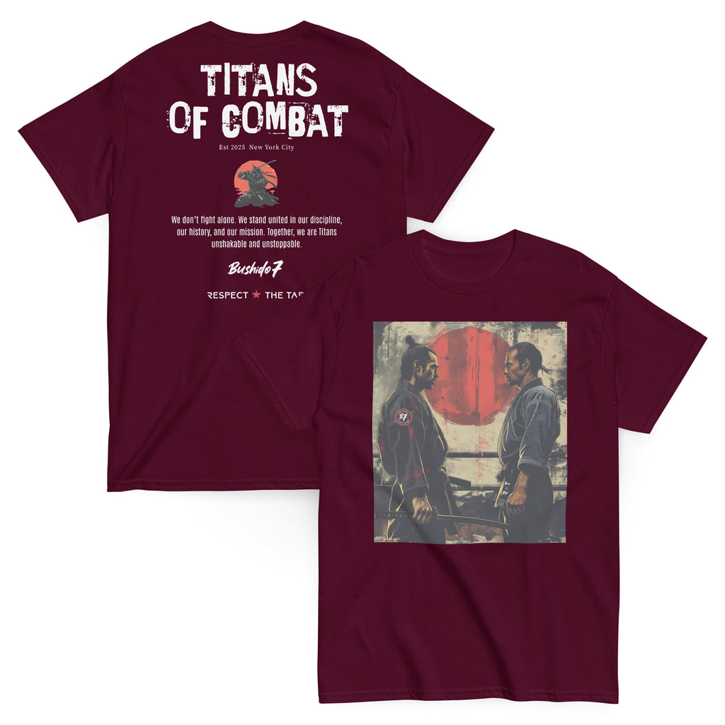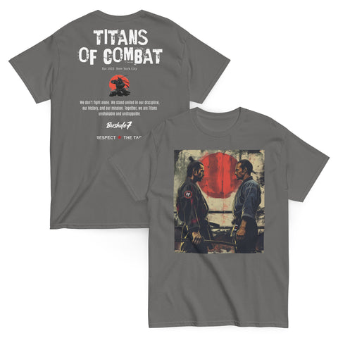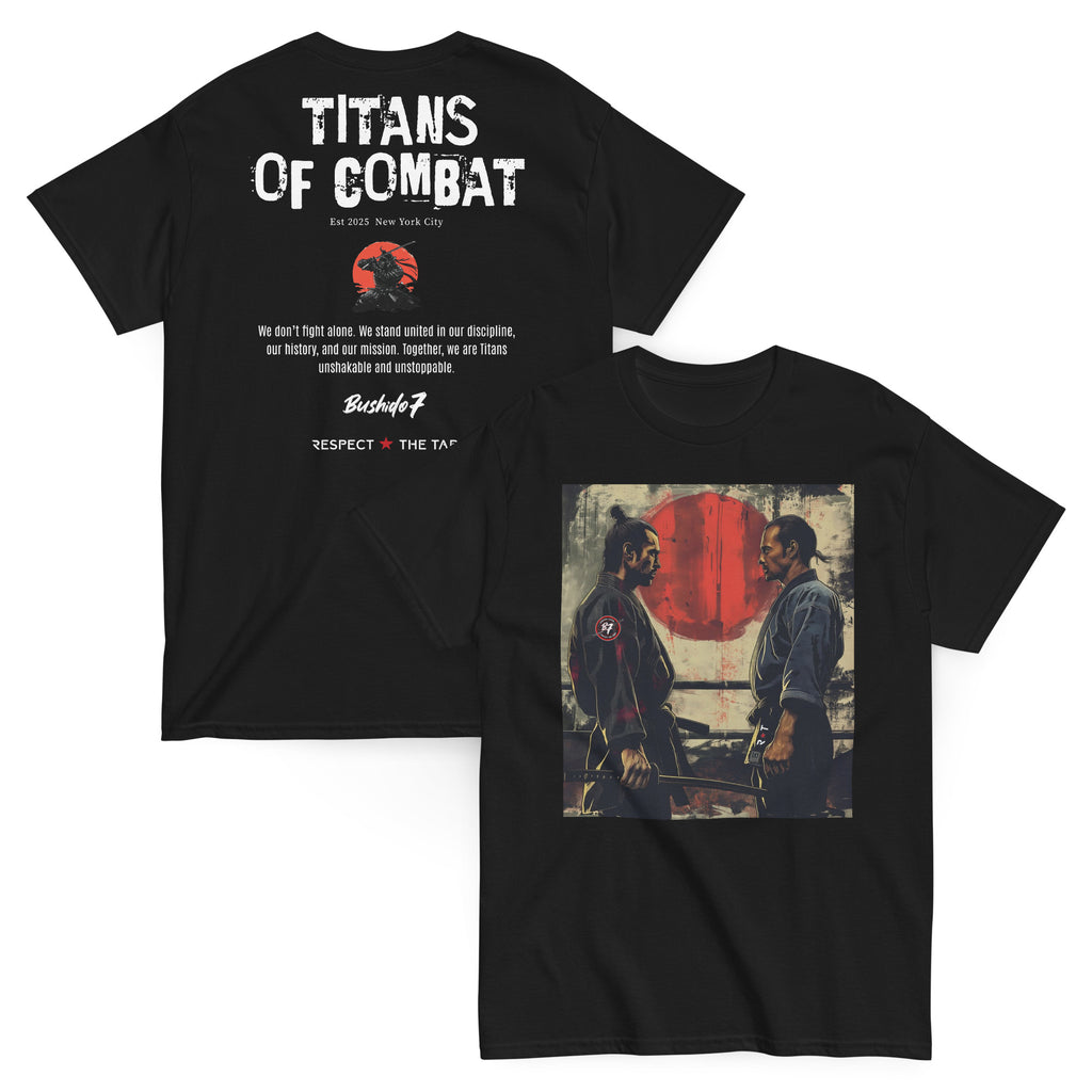 Forged through mutual respect and a shared warrior spirit, Titans of Combat unites two worlds — the modern Jiu-Jitsu warrior and the ancient Samurai. This design symbolizes strength, honor, and resilience — the bond between discipline and combat mastery.